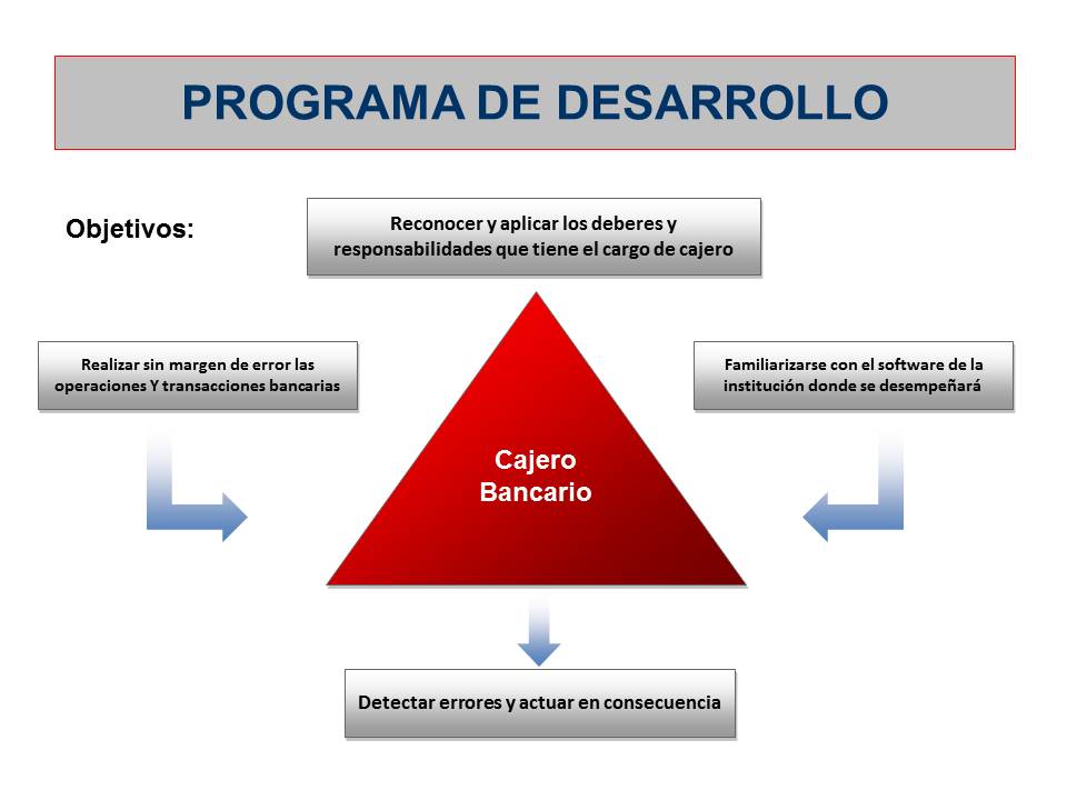 - Realizar sin margen de error las operaciones y transacciones bancarias para que puedan desempeñarse efectiva y eficientemente como cajero bancario.